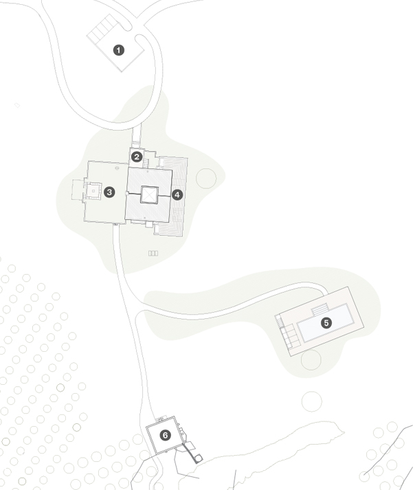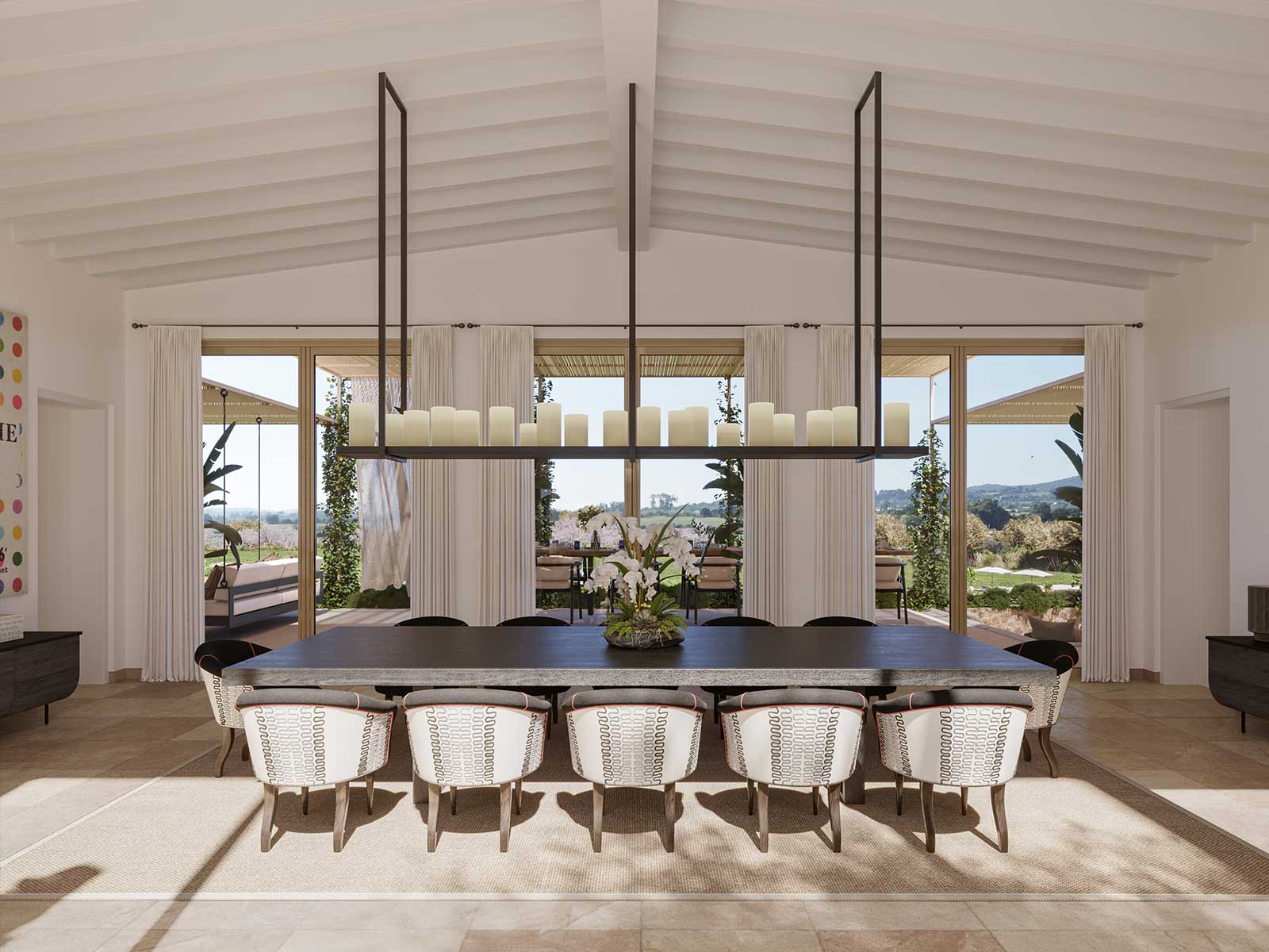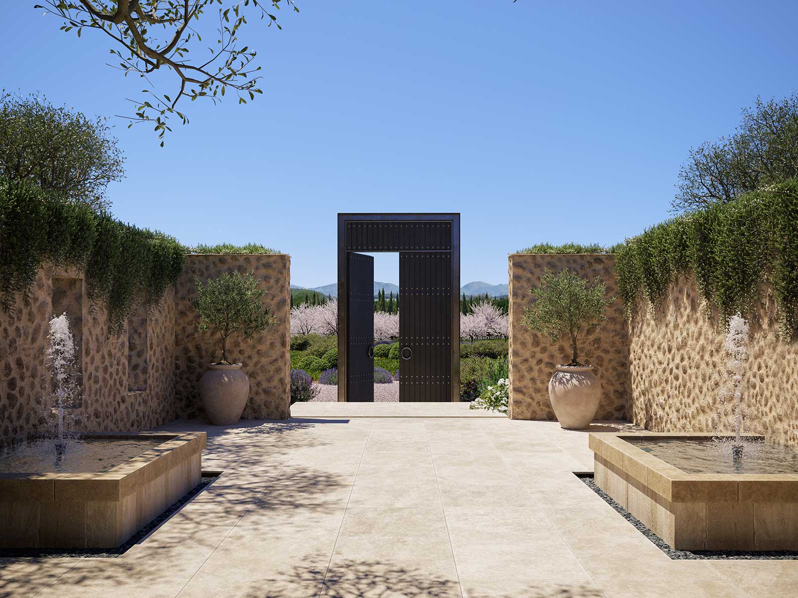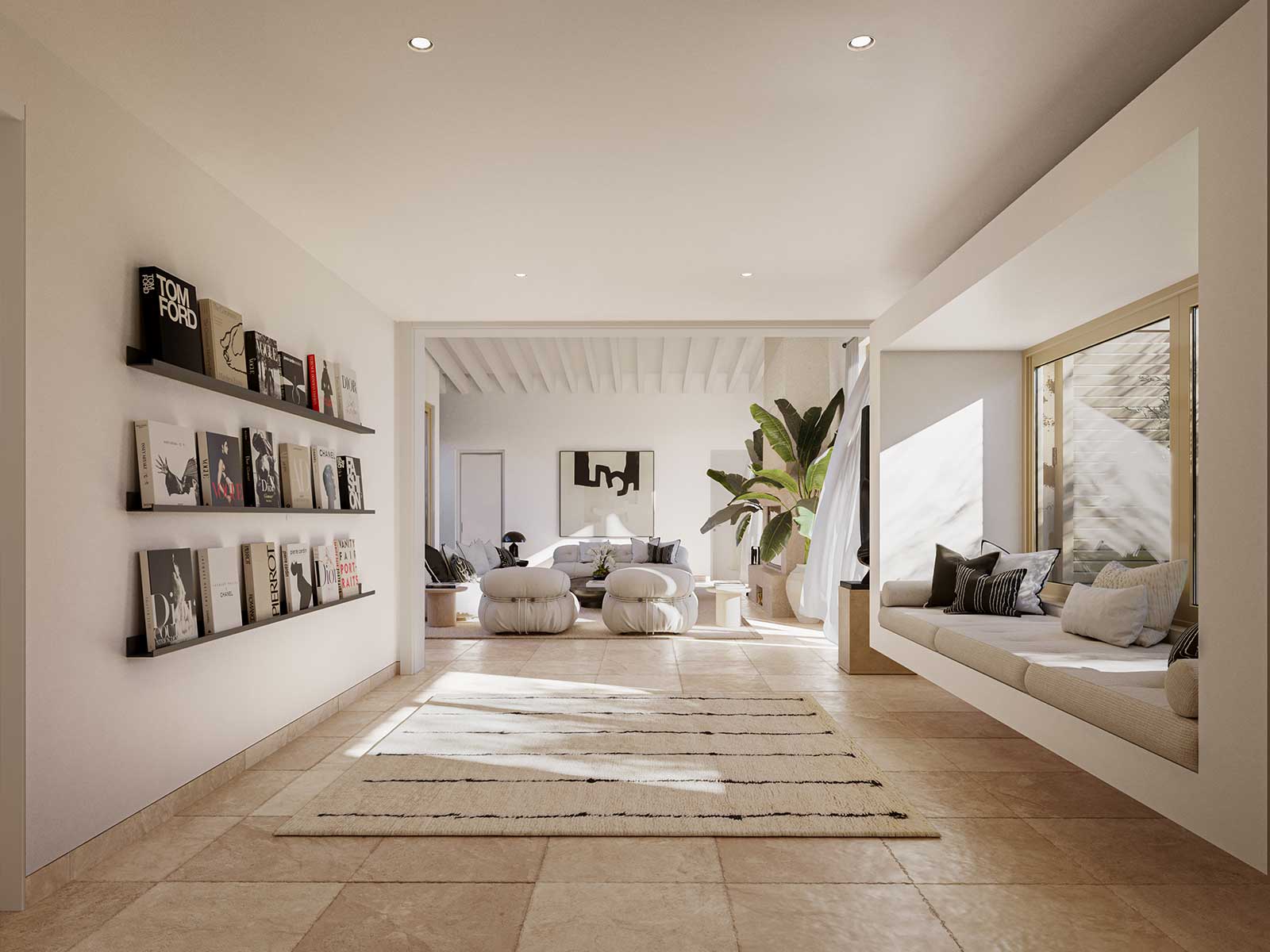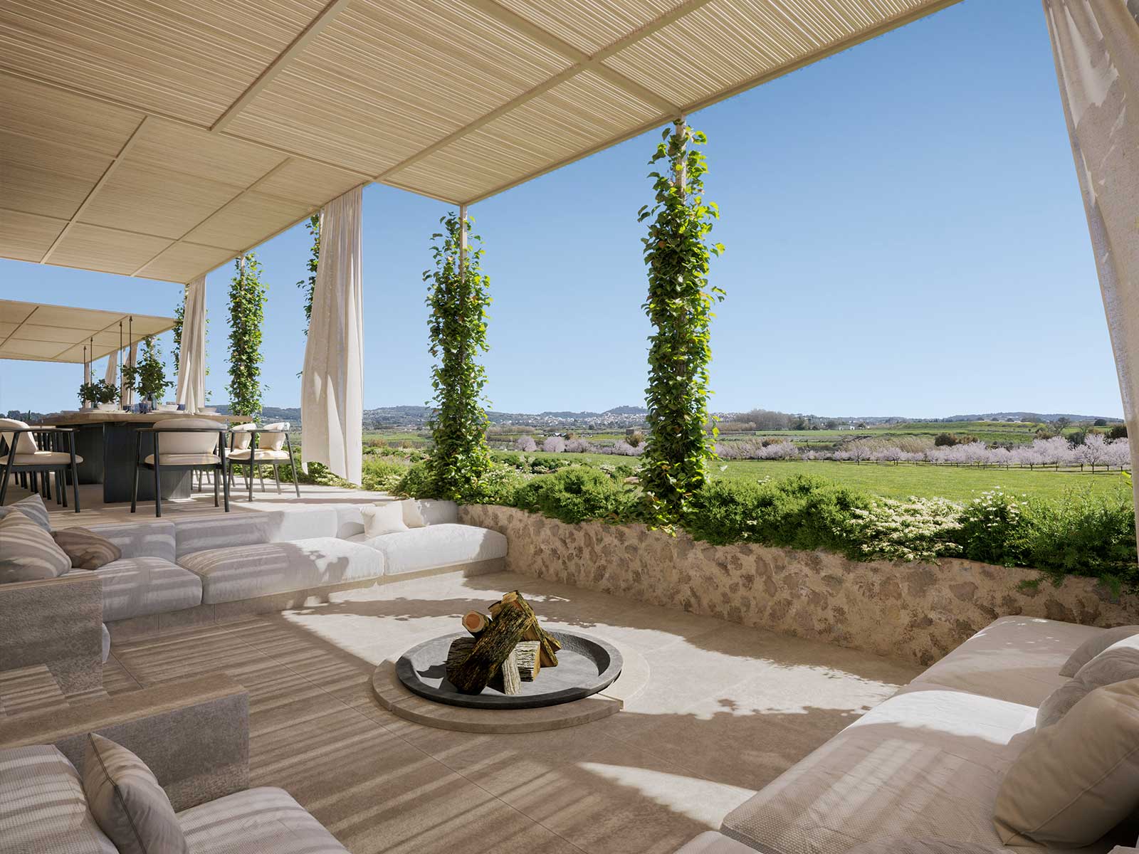 This residence is at the center of the property and was originally planned for the owner of Son Rahaa. Occupying a prime position within the estate, it reigns over the gentle landscape, seamlessly connecting all the other homes. Comprising three ensuite bedrooms, one with a walk-in closet, as well as a separate living and dining area with a double sided fireplace and a kitchen area. This home offers a spacious and luxurious experience with its own central, open air courtyard, wisely designed to favour refreshing breezes. There is an enchanting fountain, the sound of which can be heard throughout the home and the added attraction of having an expansive porch all around the front of the house that adds to the charm, providing an ideal space for outdoor relaxation and entertainment.