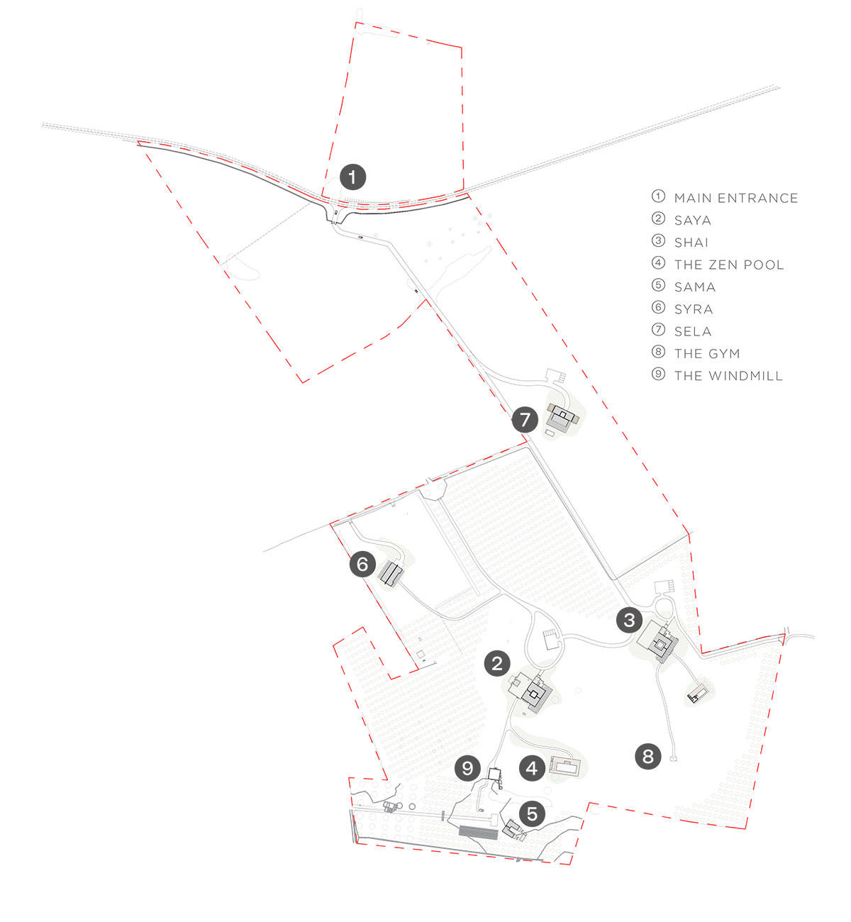 The owners envisioned Son Rahaa as a Home for one large, extended family. The main house, Saya sits majestically in the middle of the entire property. The second house, Shai can comfortably accommodate family and friends. At the bottom of the hill past the windmill, is another beautiful, cocooned guest house called Sama, with its own pool, that can also be used as a working space. The two other houses Syra and Sela can be used as guest houses, vacation getaways, professional offices, retreats or servicea residences, both offering privacy and flexibility to suit your needs.